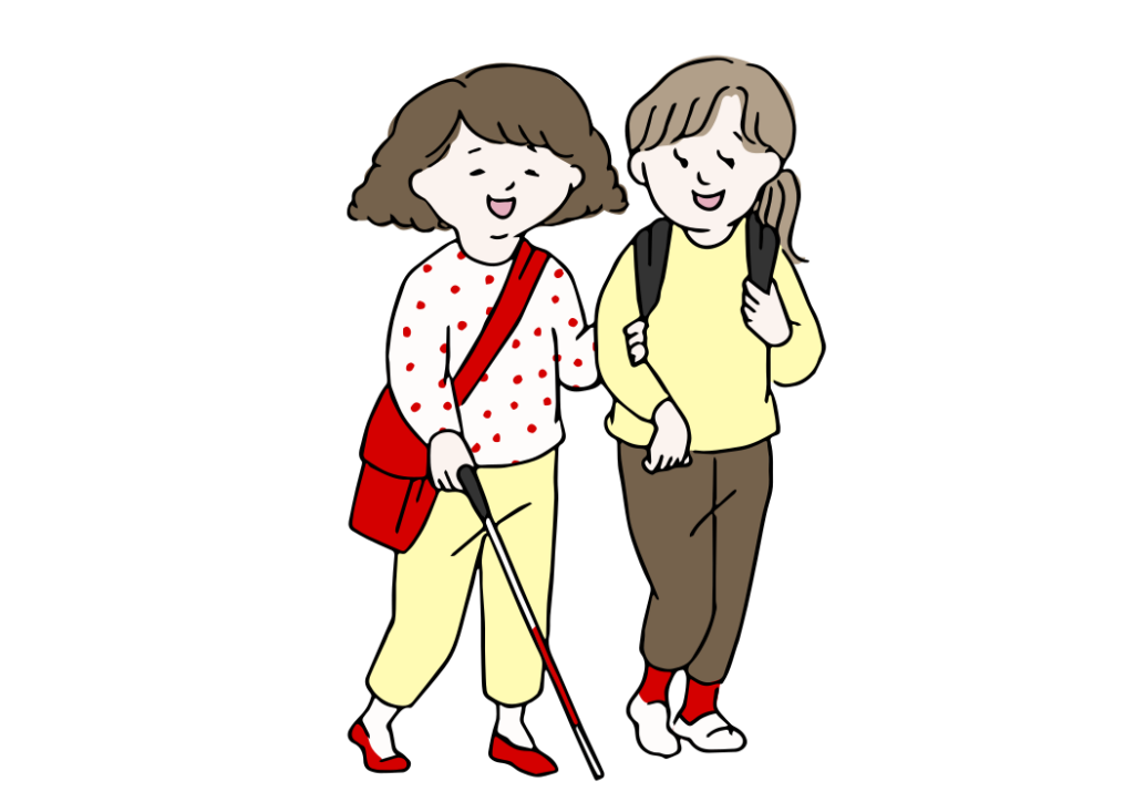 一緒に歩きながら道案内をしたり、周囲の状況を伝えたりして、